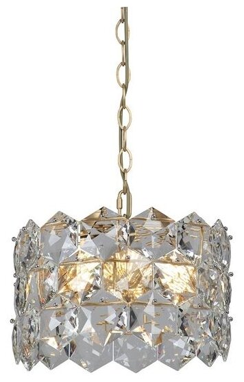 Роскошная подвесная люстра с модным дизайном не останется незамеченной в обстановке гостиной, спальни, холла. Модель эффектно смотрится и при дневном свете, и при включенных лампах. Абажур светильника собран из множества стеклянных пластинок, закрепленных вплотную и образующих красивый мозаичный узор. Благодаря декоративной огранке стекло красиво преломляет лучи света и словно мерцает изнутри. Стильная люстра органично впишется в интерьеры арт-деко, модерн и классический.