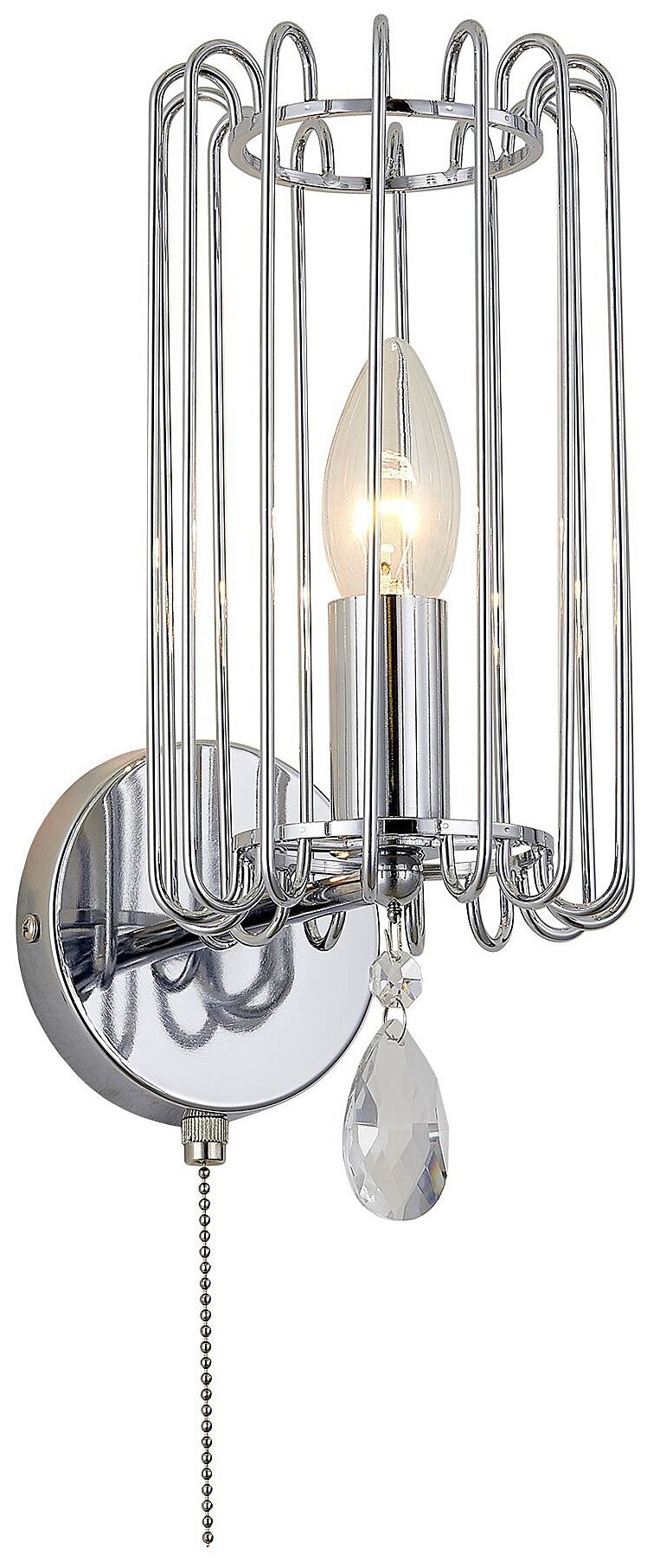 Бра Джина – для поклонников неординарных интерьерных деталей. В модели гармонично сочетаются прочность металла и изящество хрусталя. Плафон выполнен из тонких хромированных прутьев, которые с плавным изгибом закреплены на словно парящих в пространстве окружностях. Лампочка в высоком цилиндре напоминает пламя свечи. Дизайн светильника дополняет роскошная хрустальная подвеска. Бра от CITILUX станет прекрасным выбором и для авангардных, и для классических интерьеров.