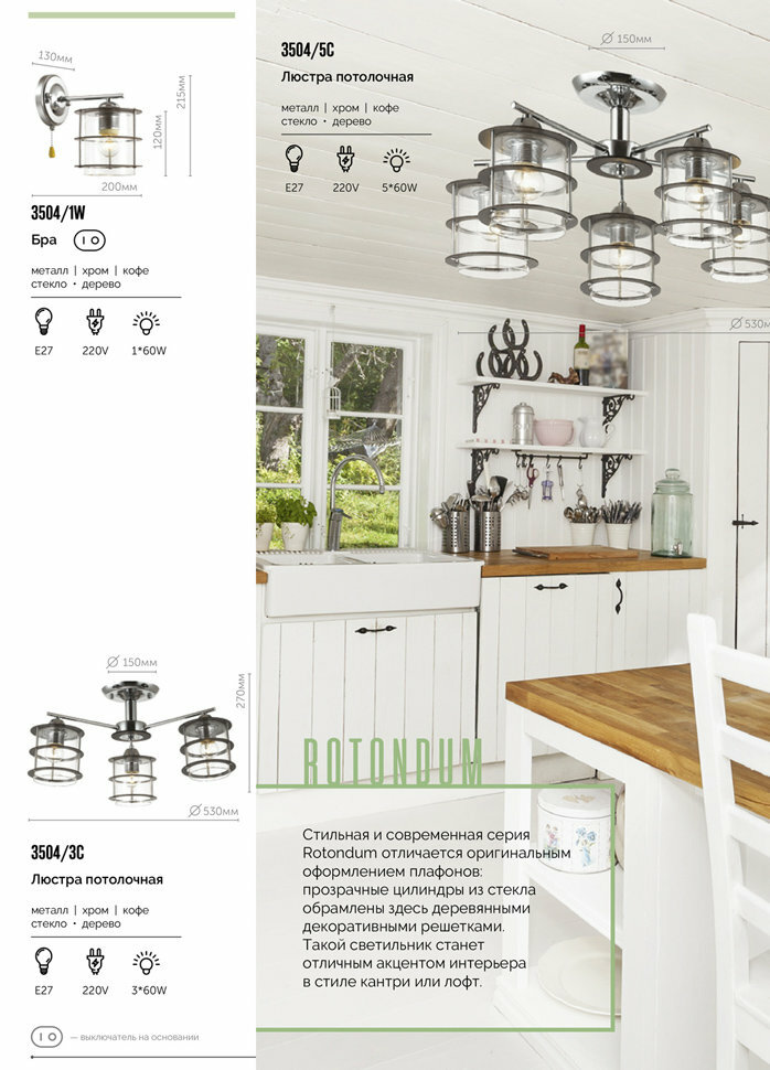 Стильная и современная серия Rotondum отличается оригинальными плафонами, выполненными из прозрачного круглого стекла, обрамленного деревянными решетками. Такой светильник станет отличным оформлением интерьера в современном или японском стиле.