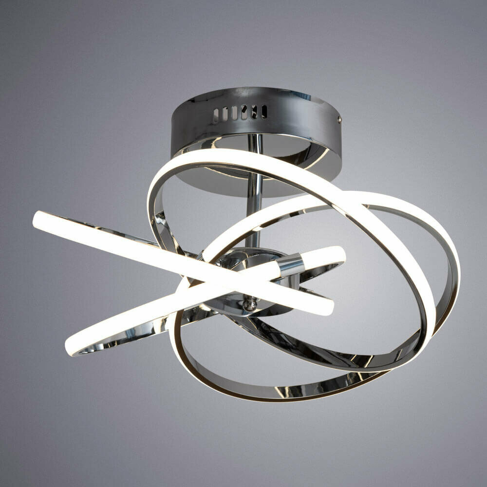 Светодиодный потолочный светильник Orbit, выполненный в стиле хай-тек, отлично впишется в современную обстановку и наполнит комнату мягким, ровным, приятным для глаз светом. Его корпус изготовлен из металла с гальваническим хромовым покрытием. Плафоны-кольца с пластиковыми белыми рассеивателями образуют эффектную многоуровневую конструкцию, позволяющую достигнуть максимальной освещенности без теней. Яркость и цветовая температура излучения #40;в диапазоне 2700 - 6500K #41; настраиваются с помощью пульта дистанционного управления. Установив специальное приложение, можно управлять работой прибора с мобильного телефона.