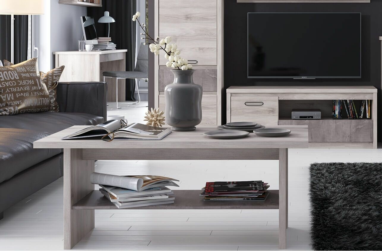 Функциональность, надежность и простота форм – отличительные особенности журнального стола Jazz. Четкая геометрия линий эффектно подчеркивает красоту поверхности, имитирующей структуру древесины каштана Найроби. Поместительная столешница позволяет использовать ее для сервировки, настольных игр, хранения печатных изданий или домашних аксессуаров. Нижняя полка делает полезную площадь стола еще больше, а основательные ножки обеспечивают его устойчивость. Стол гармонично впишется в любое помещение, оформленное в современном стиле, а комплекте с другими предметами линейки Jazz составит прекрасный гарнитур для гостиной.