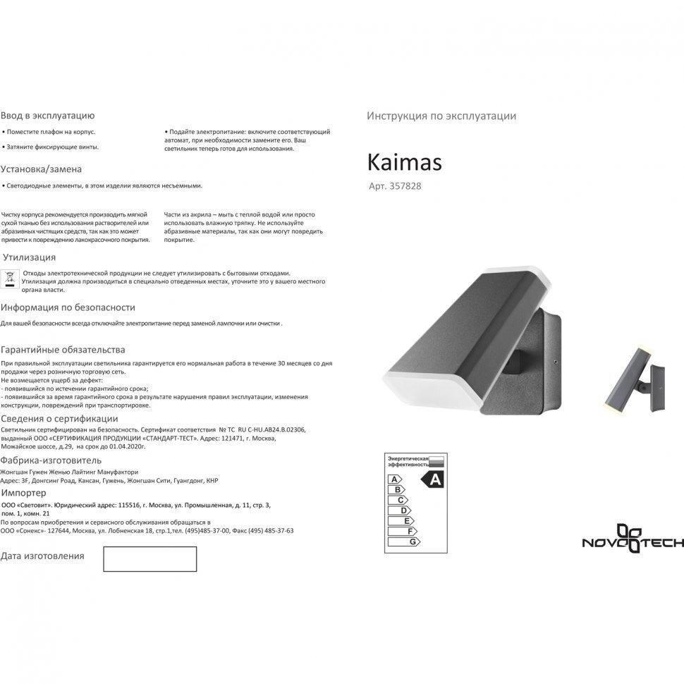 Novotech ландшафтный настенный светильник Kaimas 357828 светодиодный 12 Вт цвет арматуры: серый цвет плафона серый (80332997)