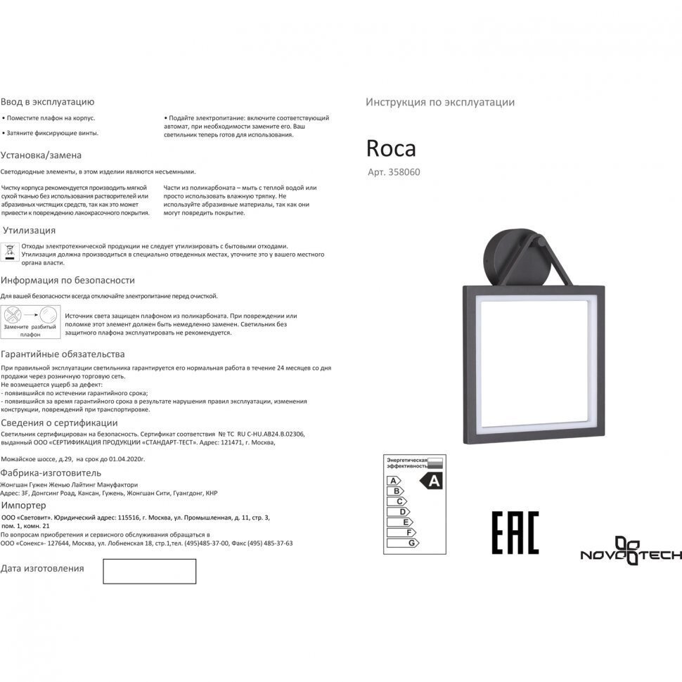 Novotech Cветильник настенный Roca 358060 светодиодный 10 Вт цвет арматуры: серый цвет плафона белый (80333023)