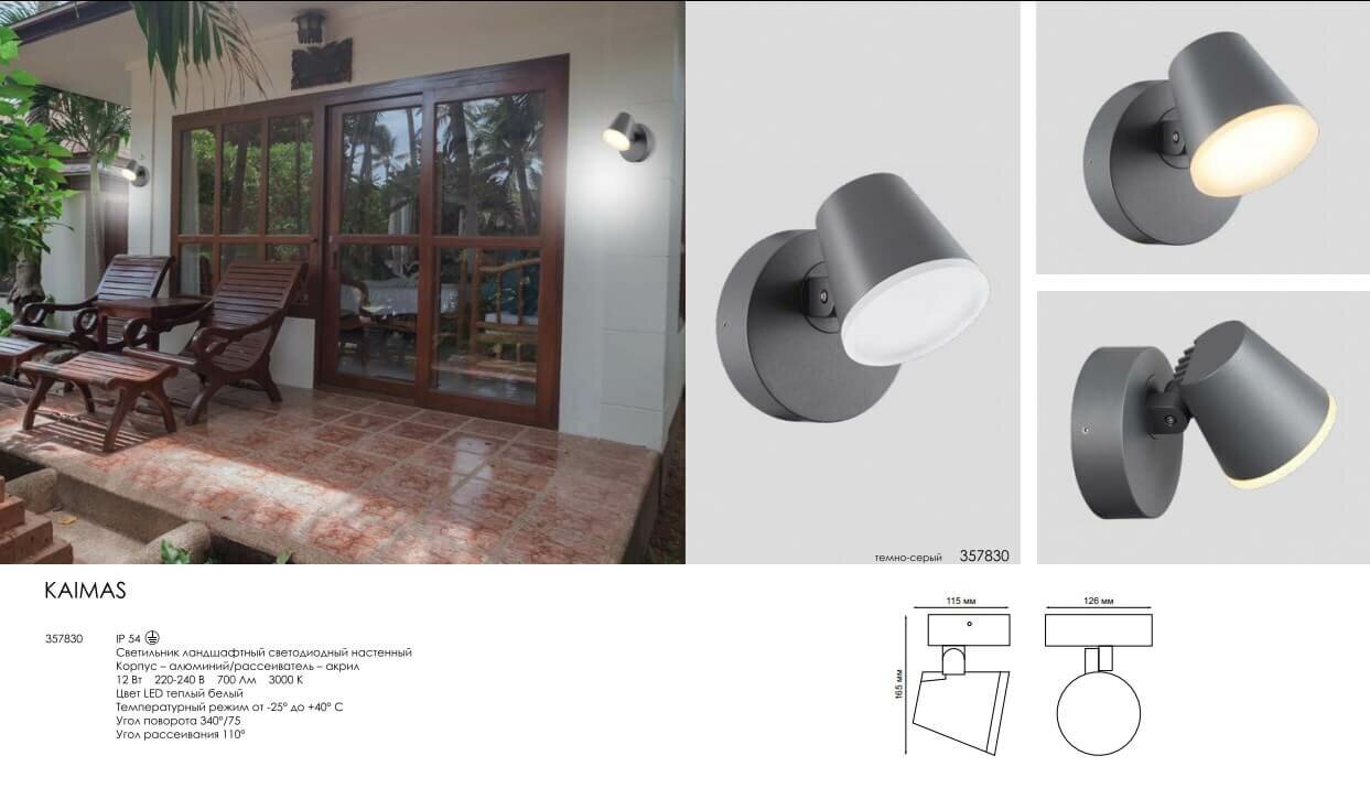 Novotech Ландшафтный светильник Kaimas 357830 светодиодный 12 Вт цвет арматуры: серый цвет плафона белый (80332999)