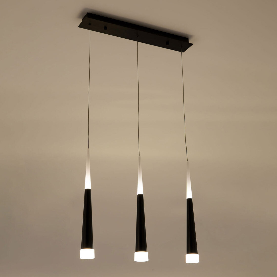 Великолепный подвесной светильник Вегас с конусными плафонами модного оттенка послужит эффектным элементом дизайна помещения, обставленного в современном стилевом направлении. Интегрированные светодиоды излучают теплый белый свет с цветовой температурой 3000 К. Мягкий и приятный для глаз он создает в комнате особую атмосферу домашнего уюта. Мощность каждого источника эквивалента лампе накаливания 60 W. Основание модели и шнуры-подвесы выполнены из металла, окрашенного по технологии порошкового напыления, рассеиватели — из высококачественного оптического полимера.