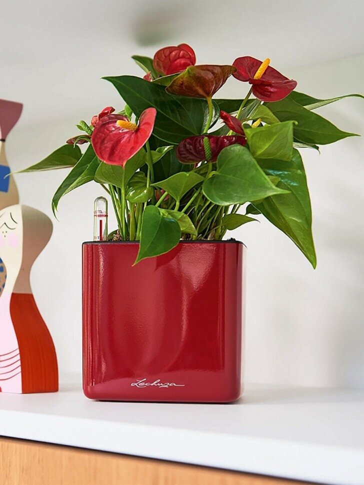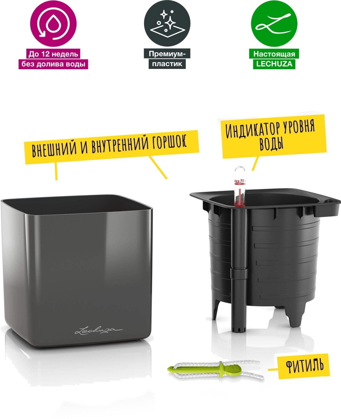 Кашпо LECHUZA CUBE Glossy с автополивом 0.4л 12x13.5 см 14x14x13.5 см красный блестящий (80333140)
