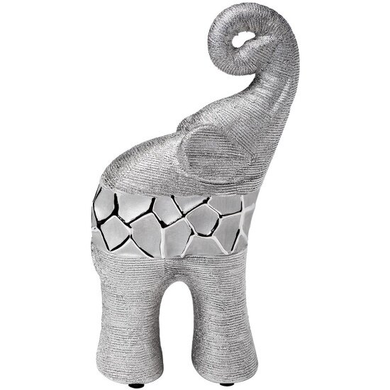 Статуэтка Слон будет одинаково удачно смотреться в шкафу-витрине как элемент коллекции или в качестве самостоятельного предмета декора. Керамическая фигурка выполнена в соответствии с канонами практики фэншуй: поднятый вверх и свернутый кольцом хобот животного символизирует привлечение в дом удачи и материального благополучия. Визуальный акцент сделан на сочетании двух разных фактур – напоминающей ткань в тонкий рубчик и имитирующей витражное стекло. Нижняя сторона изделия снабжена накладками для защиты поверхностей от царапин.
