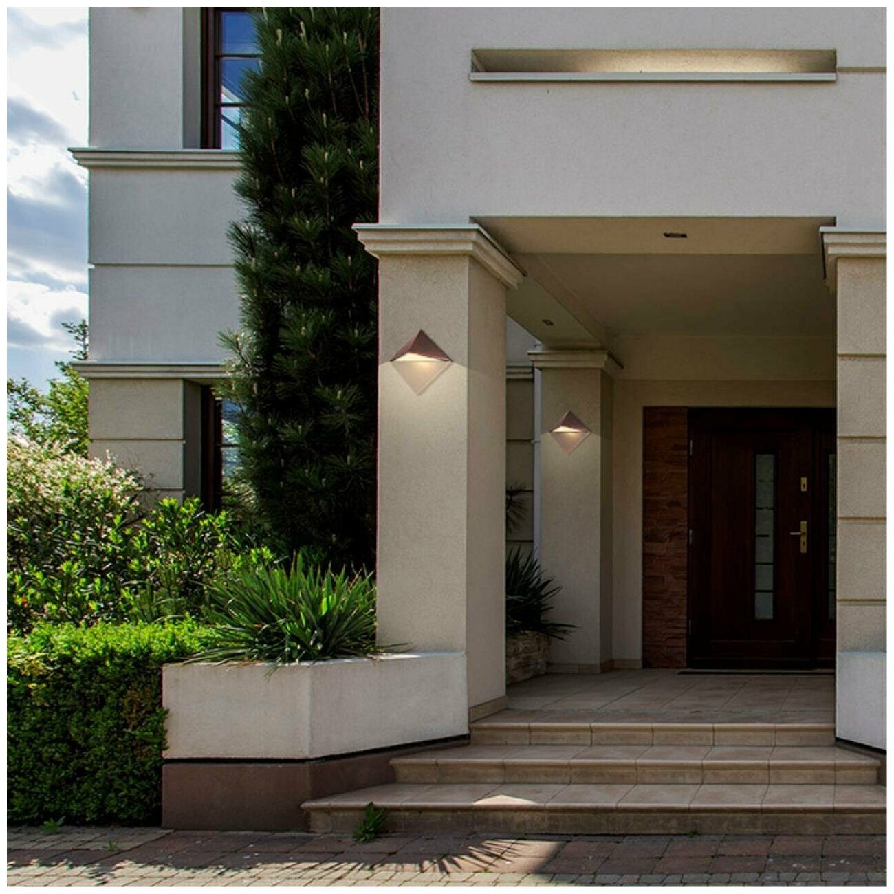 Настенный уличный светильник Testa с оригинальным пирамидальным плафоном — великолепный образец стиля техно. Он выгодно подчеркнет архитектурные особенности современного загородного дома и создаст все условия для комфортного, безопасного передвижения в темное время суток. Лаконичный корпус модели, выполненный из прочного алюминия и покрытый защитной порошковой краской, способен выдержать температуры от -25 до #43;45 °C. Рассеиватель сделан из закаленного стекла.