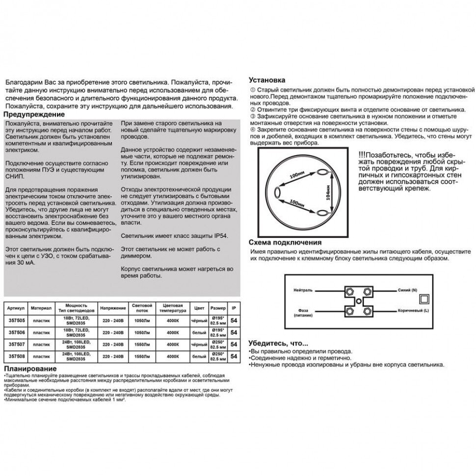 | Форма светильника | Круглые |