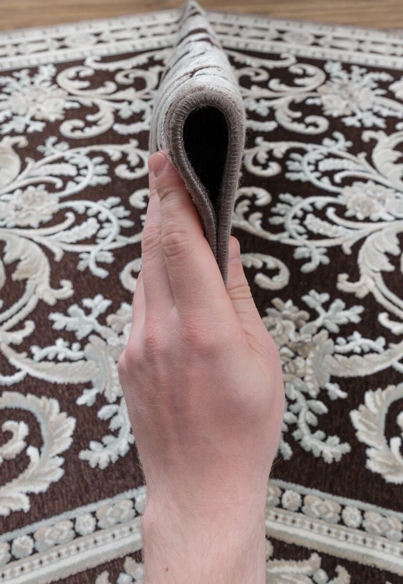 Изделие изготовлено из сочетания вискозы и акрила: этот материал придает ковру прочность, устойчивость к истиранию, обеспечивает яркость цветов, которая не утрачивается со временем. Ковер неприхотлив в уходе, легко чистится.