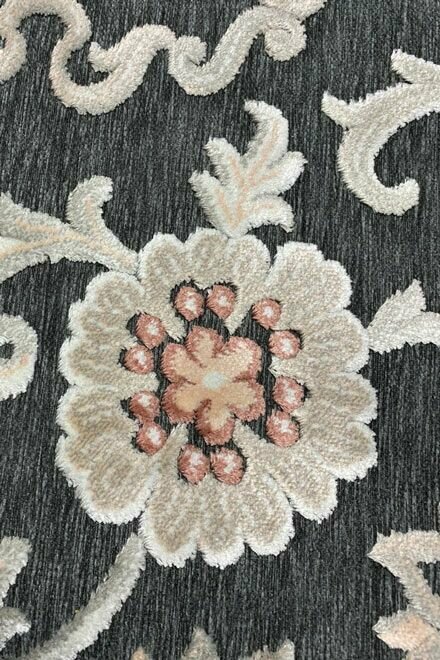 Изделие изготовлено из сочетания вискозы и акрила: этот материал придает ковру прочность, устойчивость к истиранию, обеспечивает яркость цветов, которая не утрачивается со временем. Ковер неприхотлив в уходе, легко чистится.
