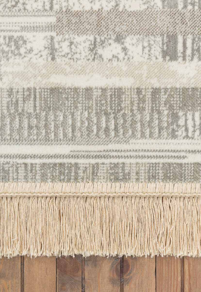 Ковер из коллекции знаменитой бельгийской фирмы Ragolle сделает уютнее помещение, с его помощью можно зонировать пространство комнаты. Ковер выполнен в традиционной технике, имеет прямоугольную форму, по узкому срезу украшен бахромой. В коллекцию входят тканые ковры с этническим орнаментом, выполненные в благородной серо-бежево-коричневой гамме. Их легко вписать в любой современный или классический интерьер. Изделие имеет низкий ворс #40;3 мм #41;, выткано из смесовой пряжи вискозы и хлопка, придающей готовому ковру особую прочность и легкость. Ковер очищают только сухим способом: в домашних условиях - с помощью пылесоса, также 1-2 раза в год подвергают его сухой химчистке.