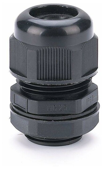 Кабельный ввод серии КВ-102 DEKraft; типа MG 25 диаметр кабеля – от 13 до 18 мм; цвет – серый; материал – пластик; степень защиты – IP68; количество в упаковке – 24 шт. Кабельный ввод состоит из фиксирующей гайки, корпуса, уплотнения из нейлона, а также из уплотнителя и прокладки из неопрена. Кабельные вводы имеют химическую стойкость к соленой воде, слабым кислотам, маслам, нефтепродуктам и основным растворителям. Конструкция кабельных вводов позволяет пропускать кабель без его демонтажа.