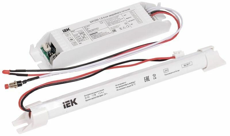 Блок аварийного питания (БАП) предназначен для обеспечения бесперебойного освещения помещений светодиодными светильниками в случае непредвиденного отключения сети 230В. БАП200 позволяет питать постоянным напряжением от 0 до 120В (регулируется DIP-переключателем) светодиодные модули различных конфигураций. Обязательным условием является наличие доступа к драйверу. Блок аварийного питания IEK состоит из электронного пускорегулирующего аппарата (конвертера), герметичной никель-кадмиевой аккумуляторной батареи, светодиодного индикатора наличия сети и подзарядки аккумулятора с кнопкой "тест".