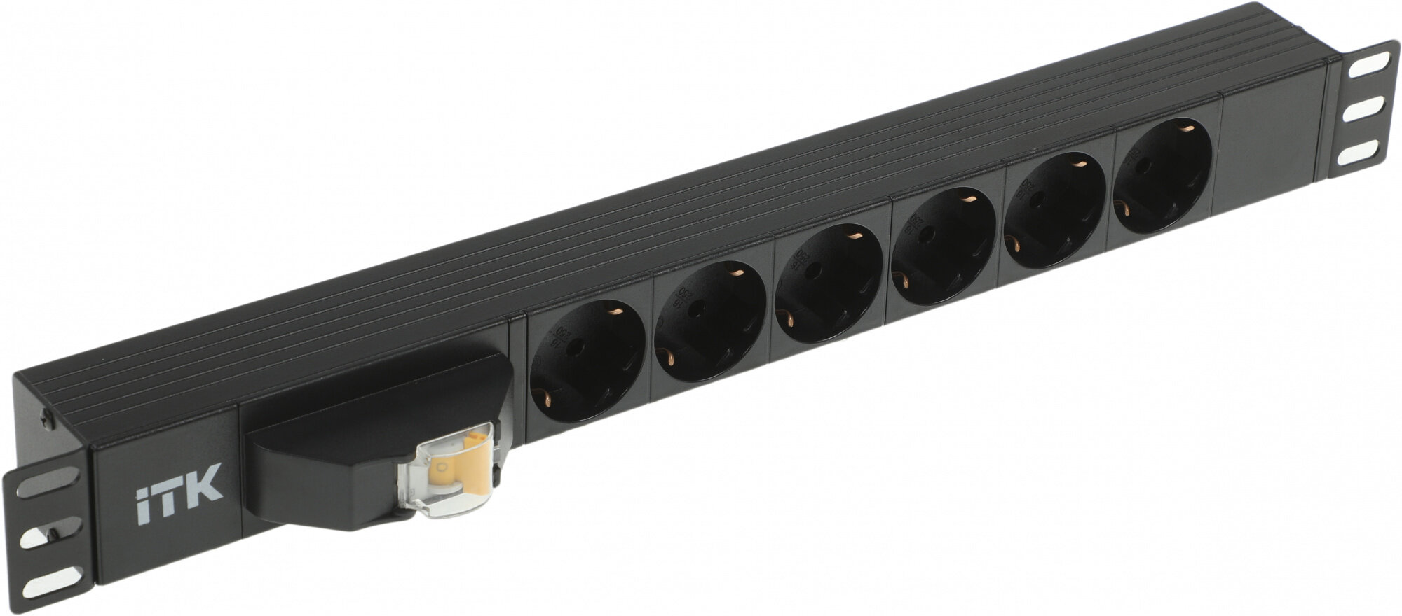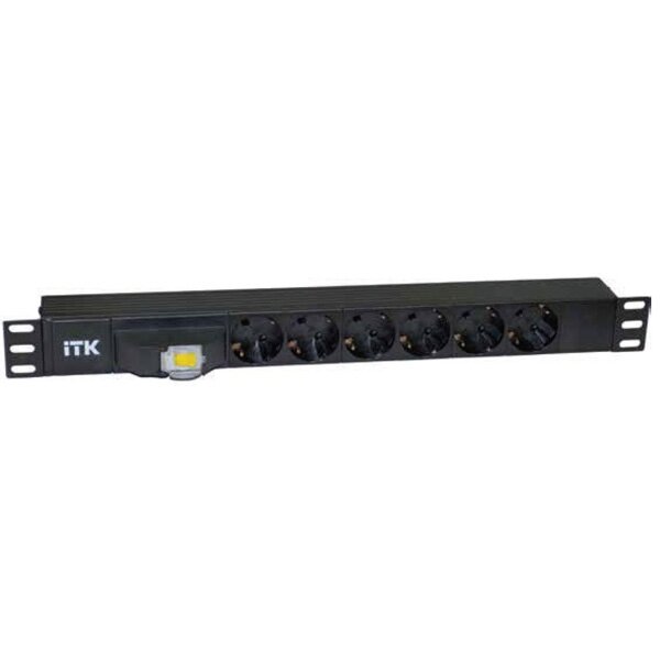 PH21-6D3 ITK PDU Блок: 6 розеток с автом. 10А 1U вх.С14 без каб. чер. немецкий стандарт IEK