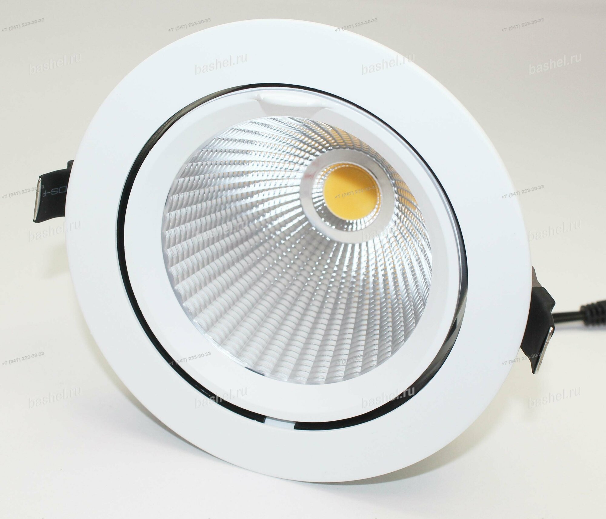 | Дополнительные характеристики | Встраиваемый поворотный круглый светильник, угол 38° / 30Вт / ДНЕВНОЙ БЕЛЫЙ 4000K / 2200-2500лм, CRI>90. Питание AC180-240V, драйвер в комплекте 700mA 25.5-43V). Размеры DxH150х140мм, отверстие для установки 140мм. Поворачивается вокруг своей оси на 350 град. |