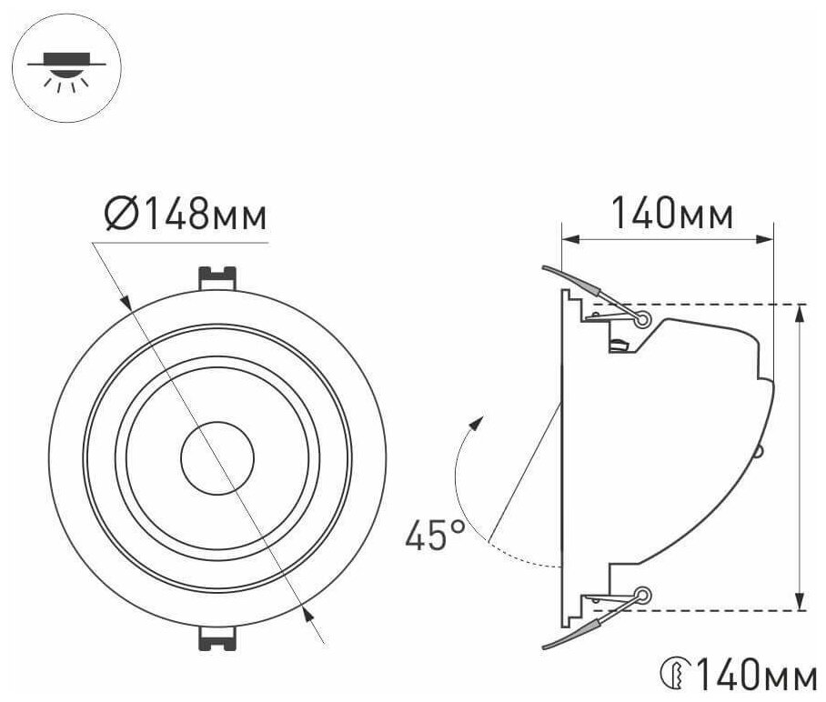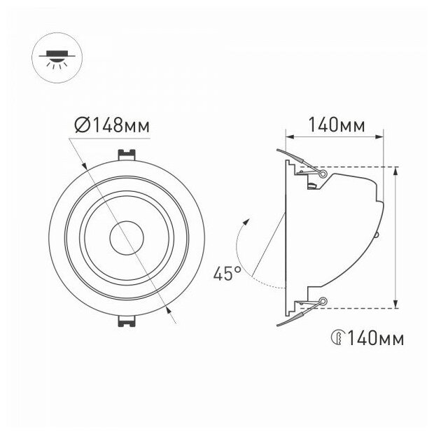| Диаметр монтажный (встраив.) | 140мм |