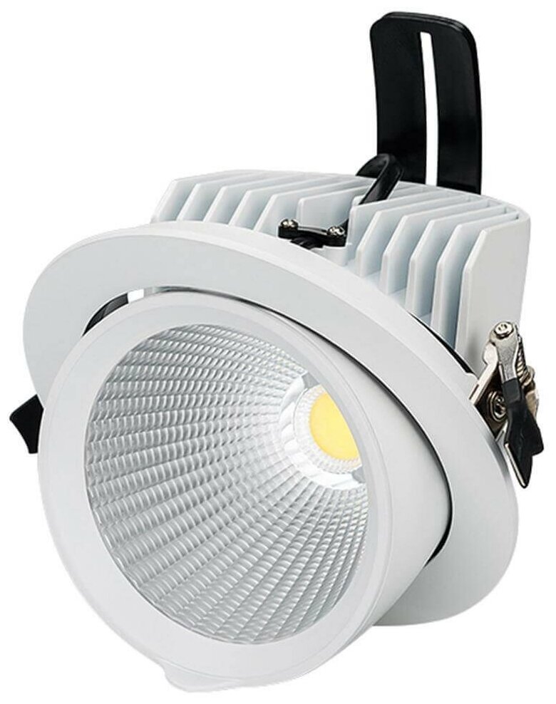 | Дополнительные характеристики | Встраиваемый поворотный круглый светильник, угол 38° / 30Вт / ТЕПЛЫЙ БЕЛЫЙ 3000K / 2200-2500лм, CRI>90. Питание AC180-240V, драйвер в комплекте 700mA 25.5-43V). Размеры DxH150х140мм, отверстие для установки 140мм. Поворачивается вокруг своей оси на 350 град. |