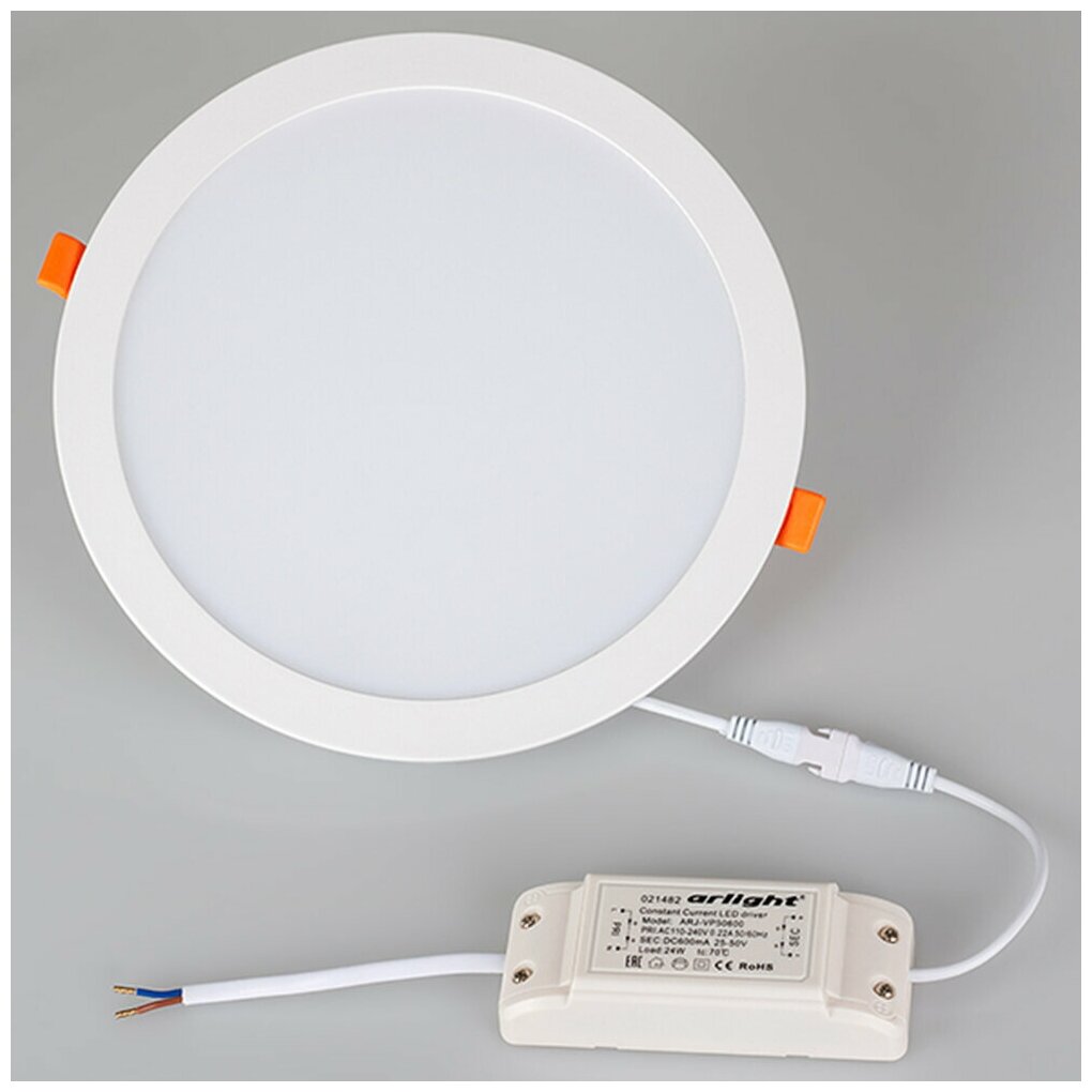| Дополнительные характеристики | светодиодная панель 24Вт, белый круглый корпус. Цвет ДНЕВНОЙ БЕЛЫЙ 4000K, св.поток 1920-2160лм, CRI(Ra);80, угол 100°. Размер Ф225x26 мм, установка в отверстие 205 мм. IP20. Питание AC 110-240V, 24Вт, DC600mA 36...44V, драйвер в комплекте. |