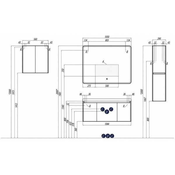 | Оснащение | зеркало с подсветкой, зеркало с антизапотевателем, сенсорный выключатель, крепления, зеркало |