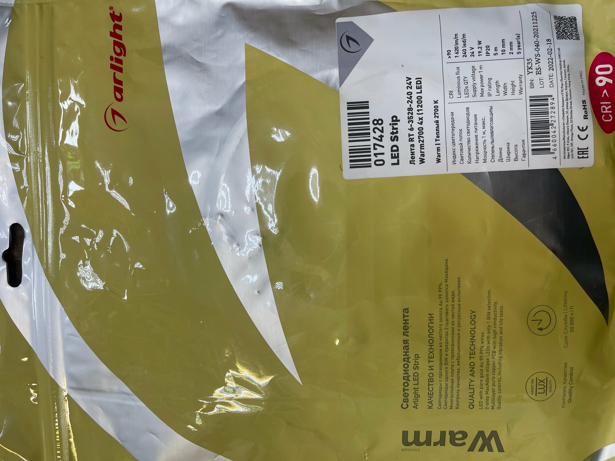 | Плотность светодиодов на метр | 240шт |