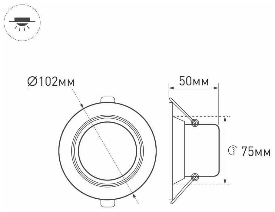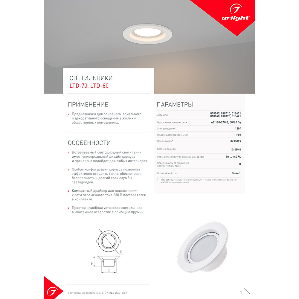 - Встраиваемый светодиодный светильник ARLIGHT LTD-70WH 5W Warm White 120deg