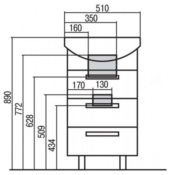 - Габариты корпуса тумбы (ШхВхГ): 466х733х309 мм.