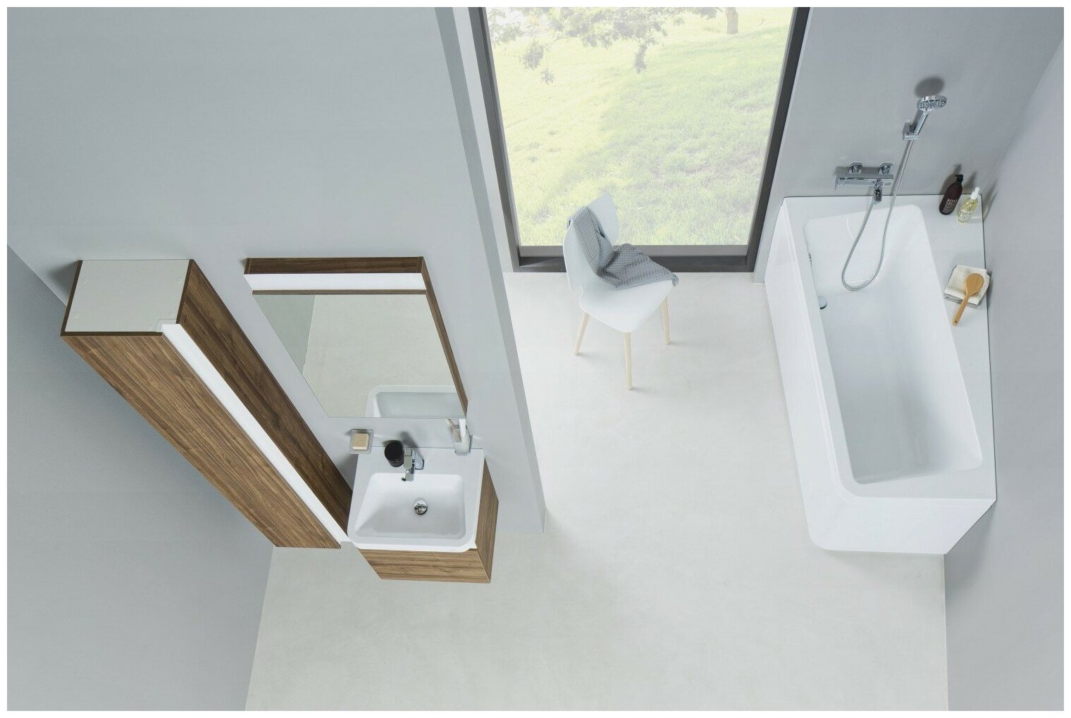 Взгляд под новым углом. Дизайнер Kryštof Nosál взял классическую прямоугольную ванну и повернул ее на 10°. Так ванна кажется ближе, ее нетипичное расположение предлагает новые возможности с точки зрения практичности - большую поверхность для вещей, которую так же можно использовать в качестве сиденья. Ванна 10° является частью одноимённой концепций для всей ванной комнаты, получившей множество наград. В основе дизайна изделий этой концепции - наклон или поворот на угол 10°, который наделяет их новыми ценностями, как эстетической, так и практической. Асимметричная ванна для всех тех, кто предпочитает классические функциональные ванны.