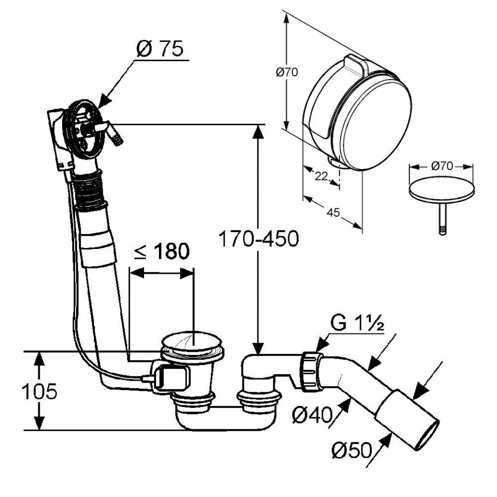 Тип товара: Сифон для стандартной ванны