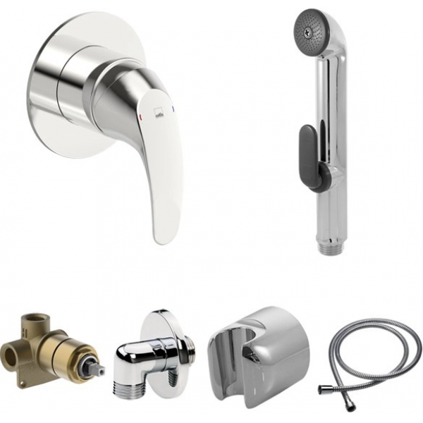 Встраиваемый смеситель с гигиеническим душем Bidetta. В комплекте со шлангом 1500мм, настенным держателем ручного душа и выводом из стены.