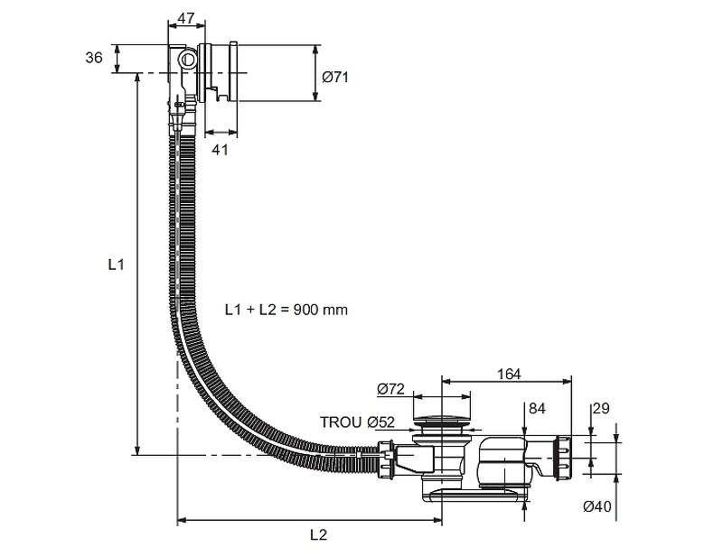 - Гибкий пластиковый шланг системы перелива: 90 см.