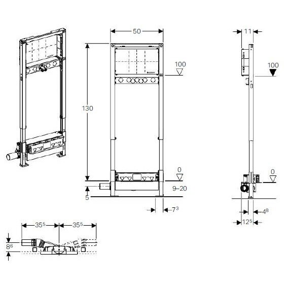 | Подходит только для | монтажа в U-образные профили UW 50 и в системные направляющие Geberit Duofix |