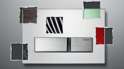 Смывная клавиша для задействования смыва из смывного бачка скрытого монтажа Geberit Sigma.