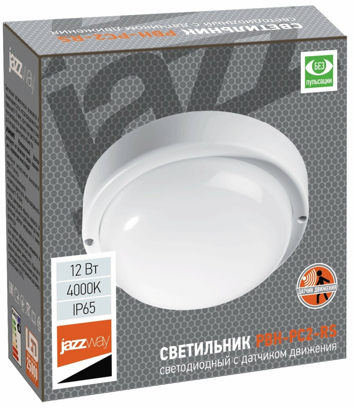 2850584A Светильник LED накладной PBH-PC2-RS 12W 960Lm 4000K IP65 с датчиком (Ø174x174х475) Jazzway