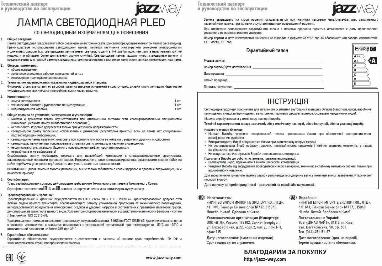 | Модель | PLED-DIM JCDR 7W 4000K |