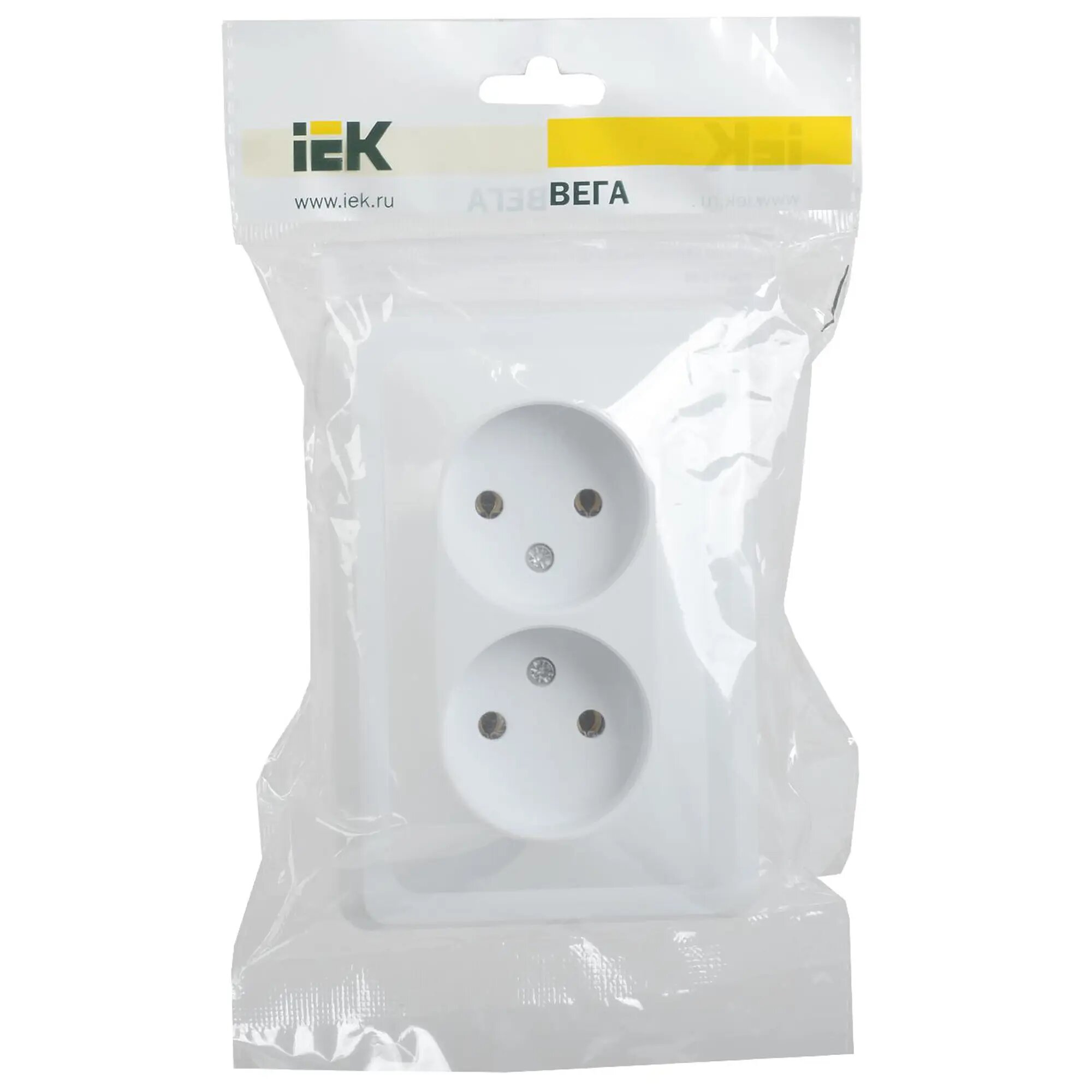 ERV20-K01-10-DM РС12-2-ВБ Розетка 2местн. без з/к без защ.штор. 10А ВЕГА (белый) Упаковка (25 шт.) IEK
