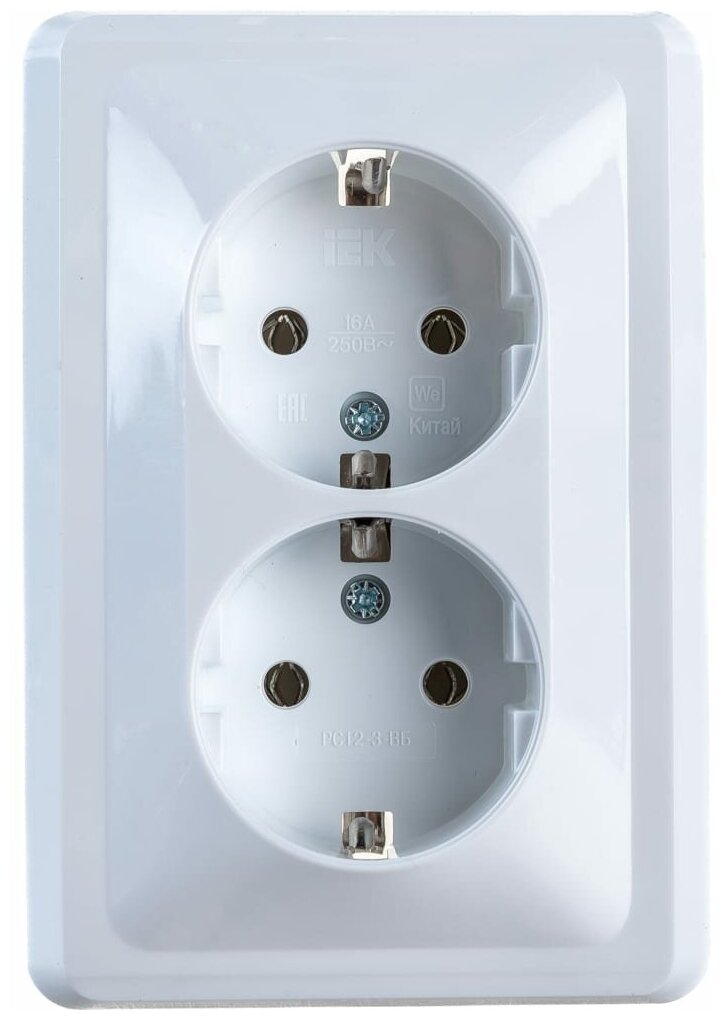 ERV21-K01-16-DM РС12-3-ВБ Розетка 2местн. с з/к без защ.штор. 16А ВЕГА (белый) Упаковка (25 шт.) IEK РС12-3-ВБ ВЕГА
