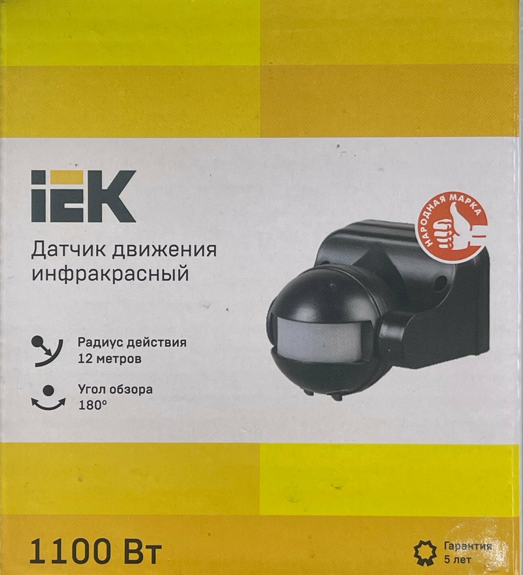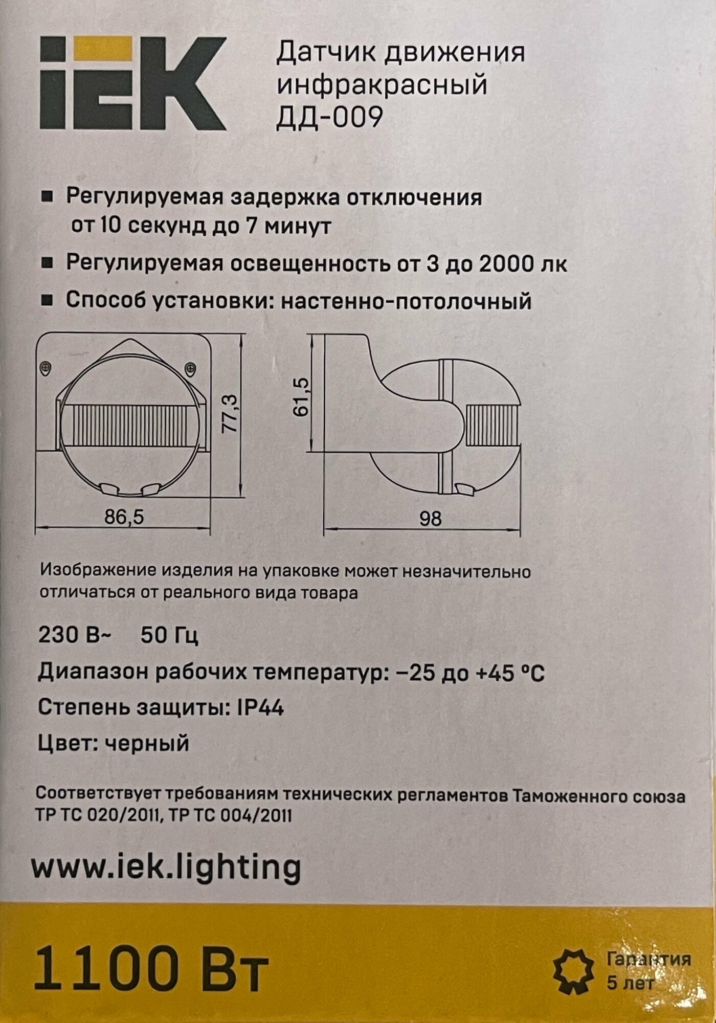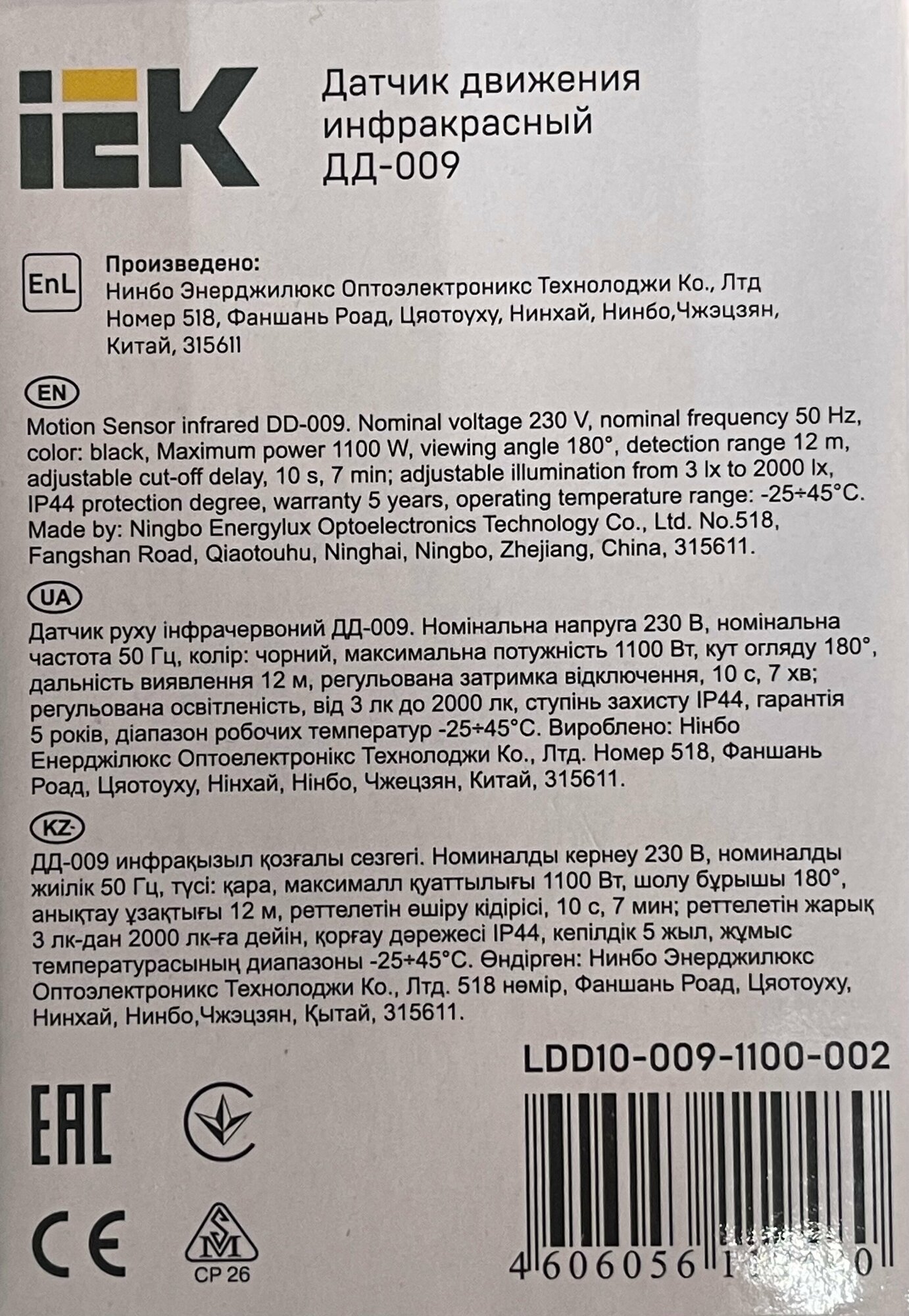 LDD10-009-1100-002 Датчик движения ДД 009 (1800 Вт 180 ° дальность 12 м в сборе настенный черный) IEK