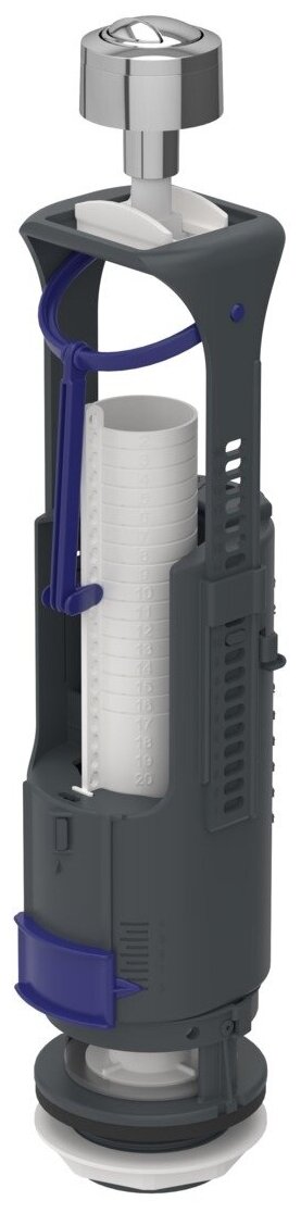 Двойной смыв с регулировкой объёма в зависимости от количества воды в бачке.
