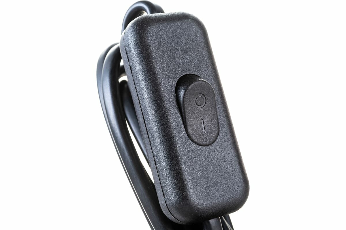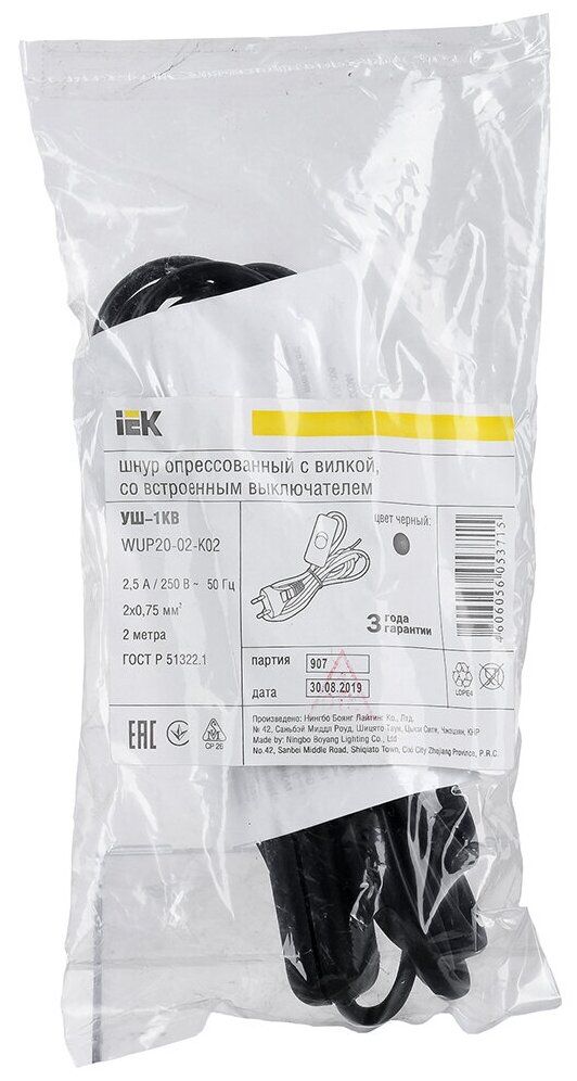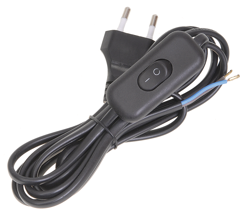 WUP20-02-K02 Шнур УШ-1КВ опрессованный с вилкой со встроенным выключателем 2х075/2метра черный Упаковка (10 шт.) IEK