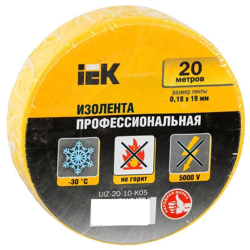 Iek UIZ-20-10-K05 Изолента 0,18х19 мм желтая 20 метров ИЭК