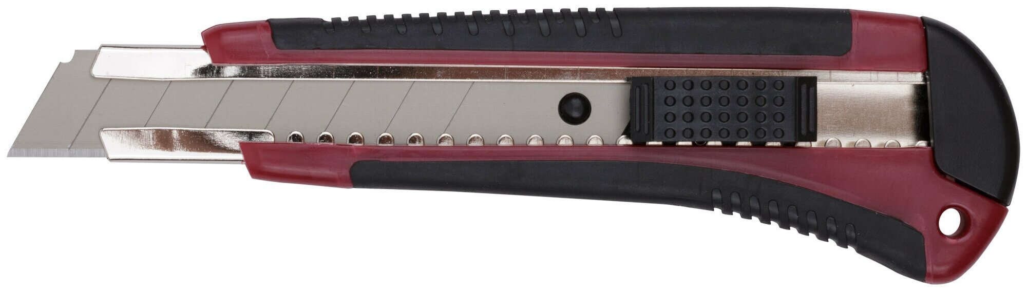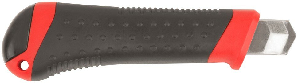 Предназначен для резки бумаги, картона. Сегментированное лезвие изготовлено из инструментальной стали, пластиковый корпус усилен металлической направляющей, с прорезиненными вставками. Автофиксация.