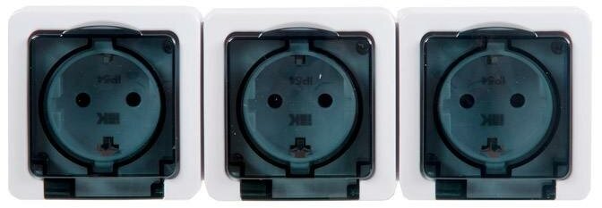 Розетка тройная с заземлением, с защитной крышкой, 16 А, дымчатая - это отличное и надежное решение для электрических подключений. Она удобна в использовании и обладает высоким уровнем защиты.