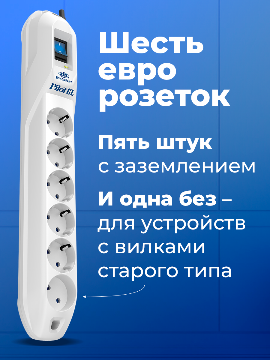 Модель, сочетающая в себе, высокой степени защиту от импульсных помех и грозового разряда и качественный индуктивно-емкостной фильтр высокочастотных помех. Сетевой фильтр Pilot GL имеет защиту от перегрузки и тока короткого замыкания. Розетки изделия закрыты специальными защитными шторками, которые исключают контакт ребенка с электрическим током