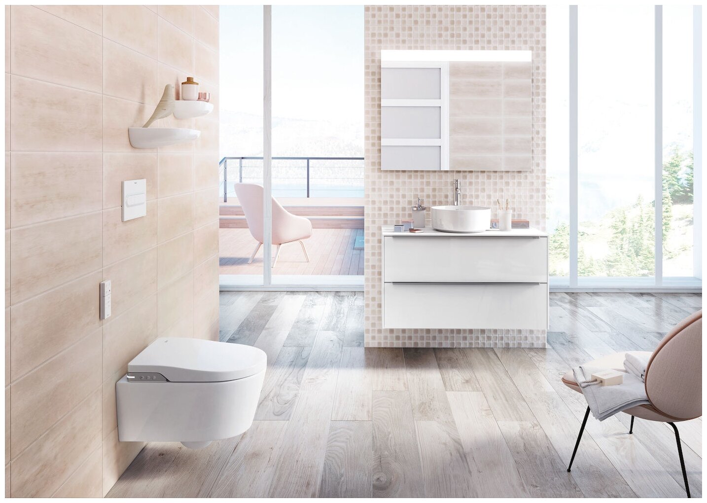| Комплектация | Подвесная чаша унитаза, сидение и крышка с системой микролифт, душевой блок и блок сушки реализован в сидении, дистанционный пульт управления, набор креплений |