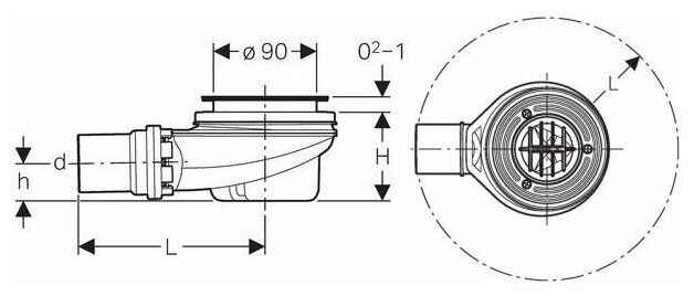 Сифон для душевых поддонов Geberit, высота гидрозатвора 50 мм, воронка из ПНД.