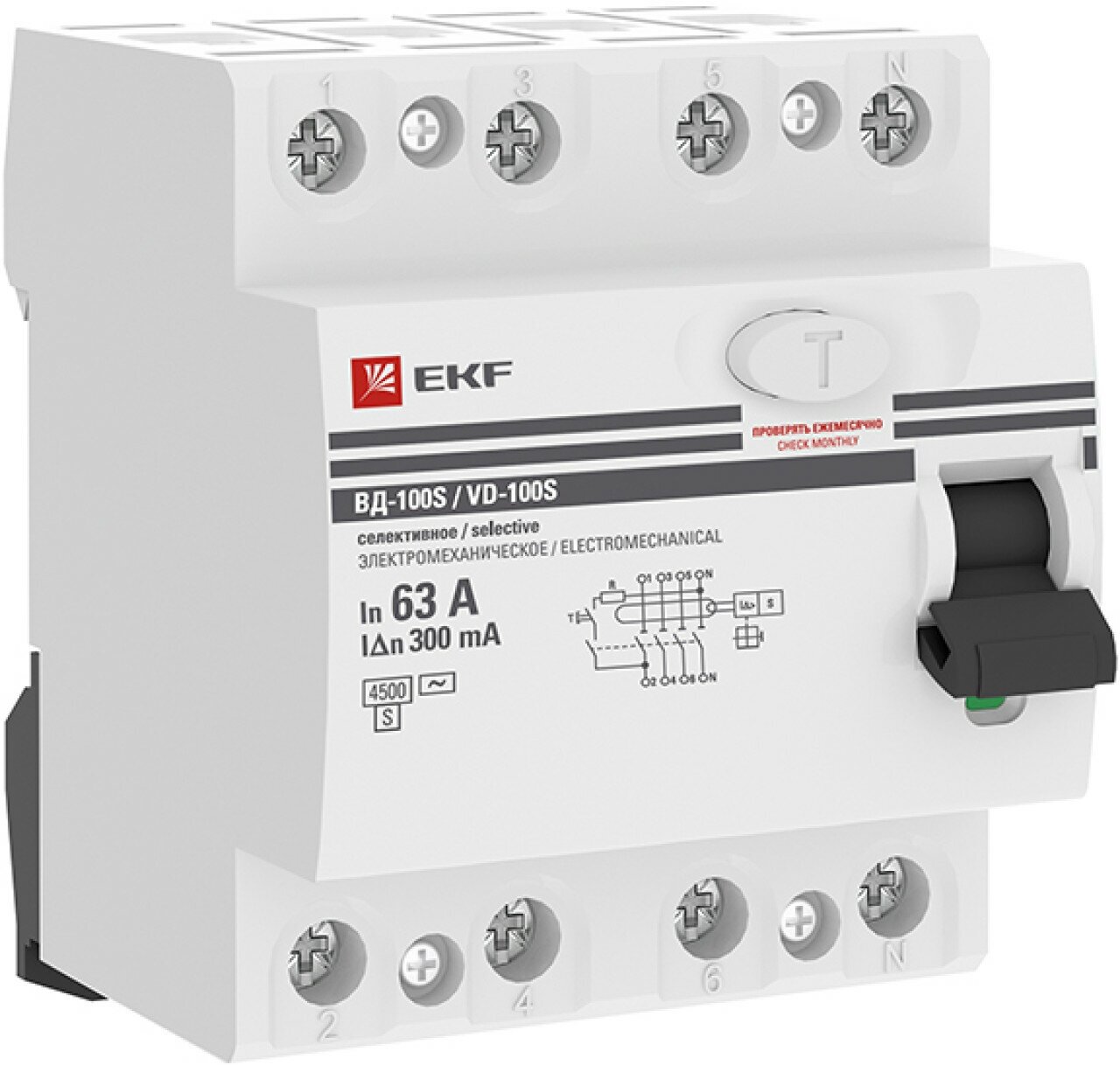 elcb-4-100-300S-em-pro Устройство защитного отключения селективное 4P 100А/300мА (электромеханическое) PROxima EKF