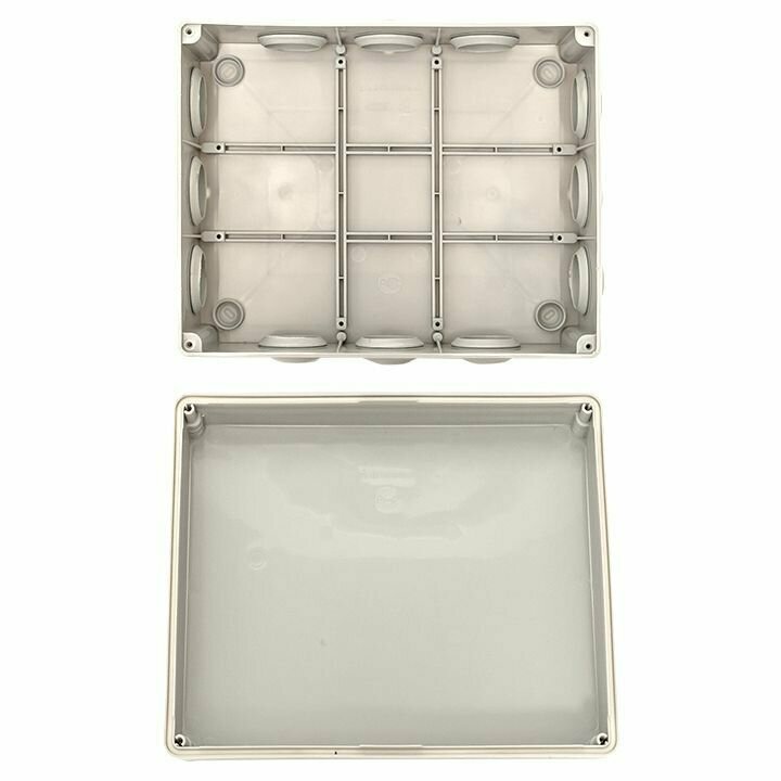 Коробка распаячная КМР-050-043 пылевлагозащитная, 12 мембранных вводов, уплотнительный шнур (240х190х90) EKF PROxima Самая важная функция монтажных коробок заключается в защите соединений жил кабелей от внешних воздействий: от пыли, влаги и механических повреждений. Монтажные коробки предназначены для создания длительной, безопасной и контролируемой установки проводки, телефонных стыков, розеток, выключателей, регуляторов освещенности и устройств связи. Также монтажные коробки применяют для создания эстетического вида интерьеров и фасадов, поскольку закрывают неприглядные концы жил и применяемые клеммники или колпачки СИЗ. Коробки распределительные для наружной проводки используются в комбинации с гофрированными, гладкими или армированными трубами для построения силовых или слаботочных сетей. Отличаются экономичностью. Все распределительные коробки этой серии имеют сальники для подключения гофрированных, гладких или армированных труб и обеспечения класса защиты в соответствие с нормами. Коробки распределительные предназначены для крепления на стены, потолки или на лотки. Имеют современный дизайн и отвечают требованиям станд