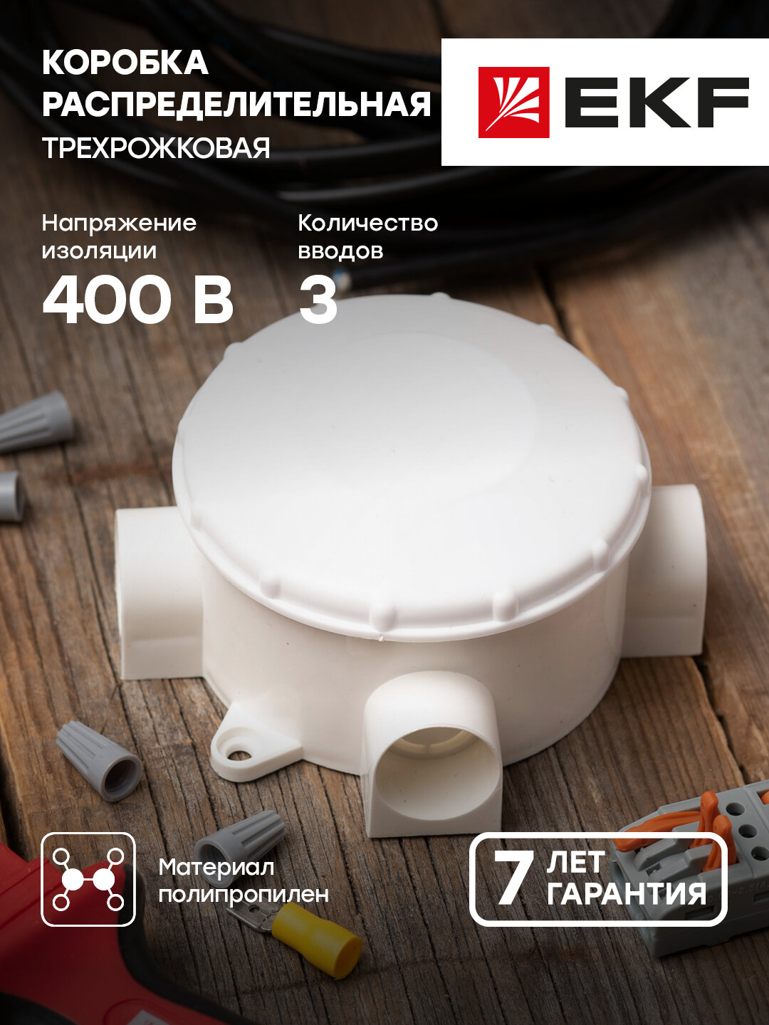 plc-kmr-040-040 Коробка распаячная КМР-040-040 трехрожковая белая (80х35) PROxima Упаковка (10 шт.) EKF
