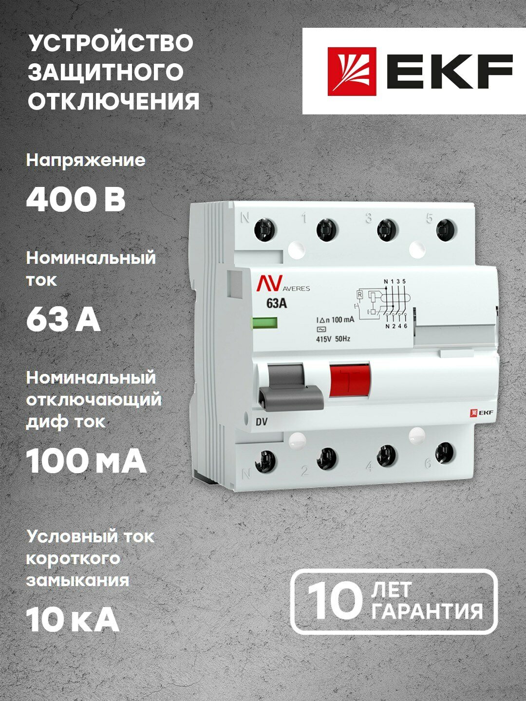 rccb-4-63-100-ac-av Устройство защитного отключения DV 4P 63А/100мА (AC) AVERES EKF